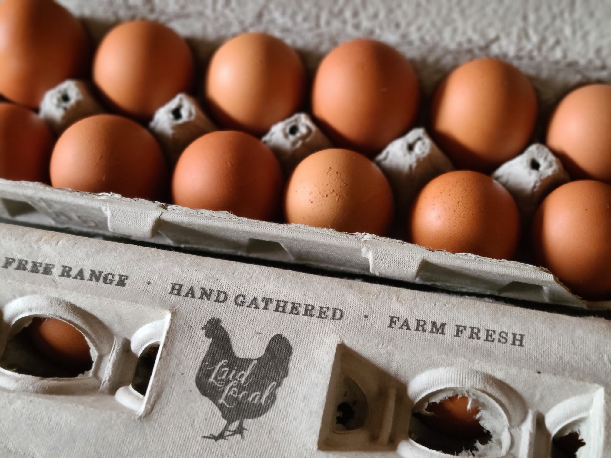 Our young flock of chickens are currently producing medium sized eggs. Eggs will continue to get larger as the season progresses. Photo reflects average color and size.
